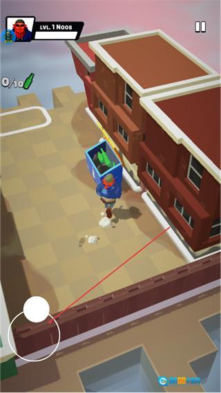 1、操控角色移动到垃圾桶位置,翻找垃圾桶获取物品如绿色道具,积累资源。