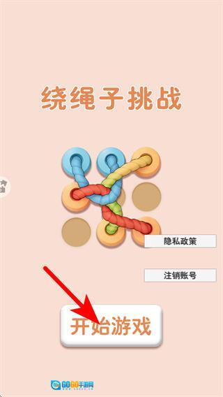 1、在游戏启动界面点击开始游戏按钮,进入绕绳子挑战的关卡流程,开启解谜玩法。