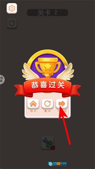 3、关卡通关后,点击下一关按钮,进入下一个绕绳解谜关卡,继续挑战更复杂的绳结布局。