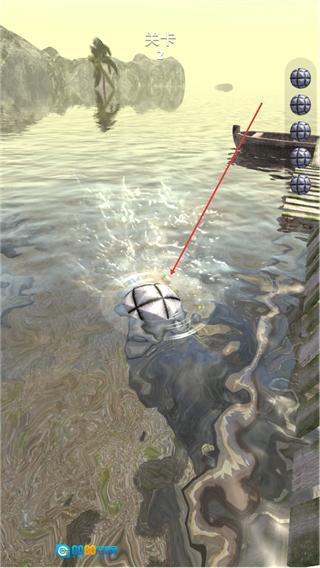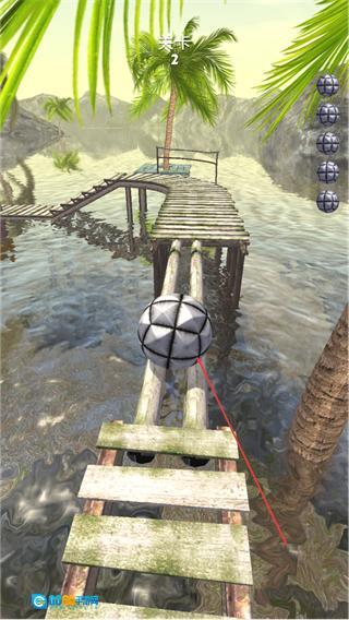 1、在关卡2中,通过滑动控制球体在木桥上滚动,保持平衡推进关卡。