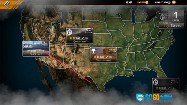 3、在赛事选择的地图界面中,点击其中一个Quickrace选项,就能参与对应赛程的快速竞速赛,赢取赛事奖励。