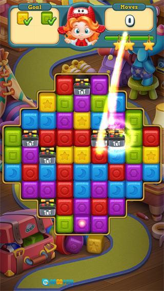 不同道具搭配可触发大范围消除特效,视觉体验爽快,要求在限定步数内消除规定的方块,能让消除过程充满期待感与趣味性。