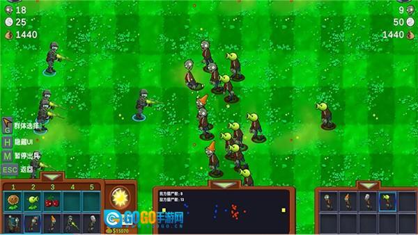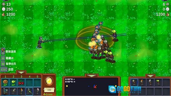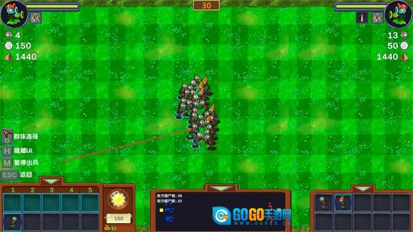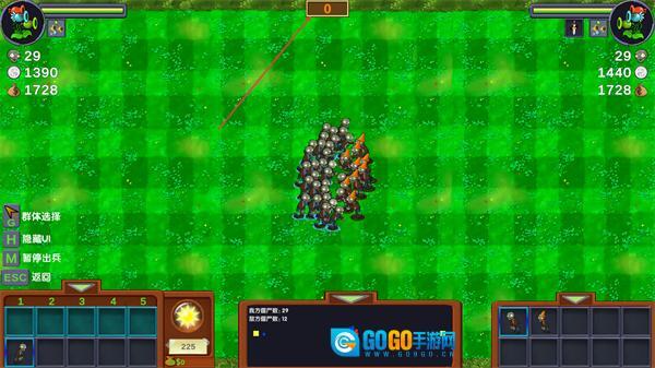 2、投放僵尸单位,朝敌方区域推进,集结兵力,与敌方单位展开战斗。