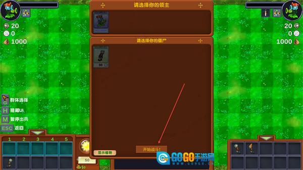 1、选择领主与僵尸,点击开始战斗进入对战,准备部署单位作战。