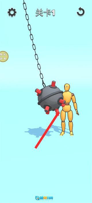 1、进入关卡1后,观察悬挂的危险装置,通过移动操作让木偶角色避开装置的威胁区域,完成关卡挑战。