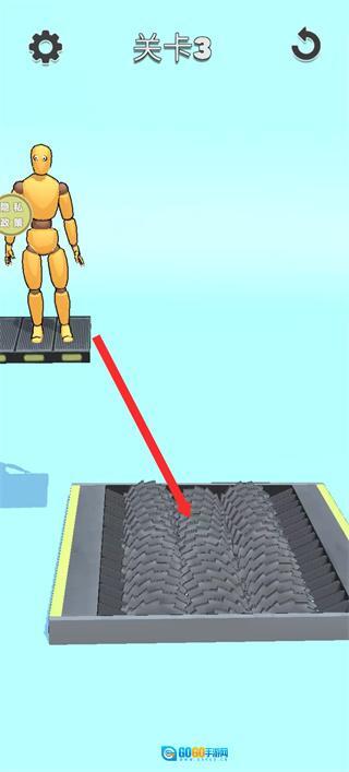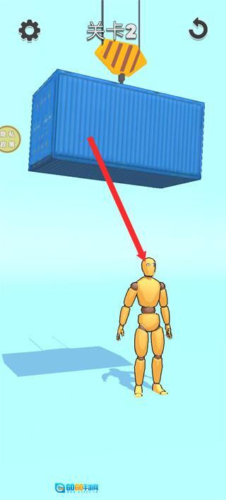 2、推进到关卡2,操控木偶移动,避开上方悬挂的集装箱的下落范围,顺利通过该关卡的危险区域。