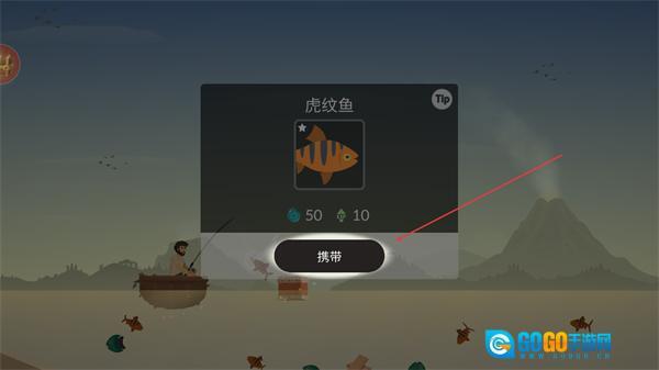 4、钓到虎纹鱼后,点击携带获取该鱼类,积累资源,推进小岛求生的进度。