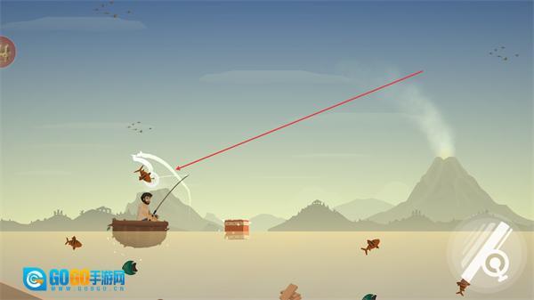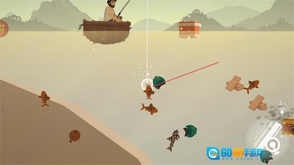2、钓中目标鱼类后,完成垂钓操作,积累资源,同时收集水中的物品。