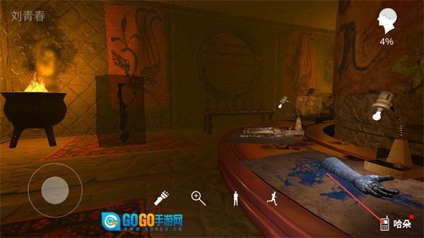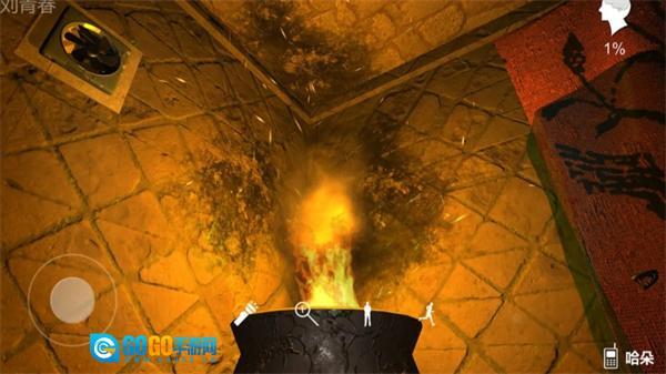 3、当探索到新场景时,留意实验台、火焰装置这类场景元素,点击右下角的对讲机交互按钮就能和哈朵对话,从而获取到与解谜有关的信息。