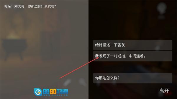 4、当触发和哈朵的对话界面时,挑选对应的对话选项(比如“我发现了一对戒指,中间连着”这类选项)来回应,就能推动剧情发展,同时获取更多和解谜相关的提示。