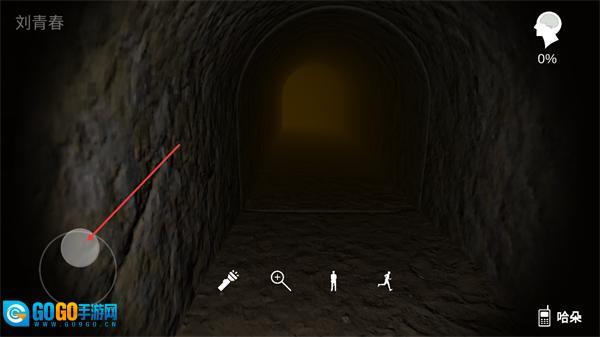 进入这个解谜场景后,通过操作左侧的移动按钮来控制角色在隧道里前进,与此同时可以借助界面上的手电筒道具照亮周围环境,这样能更清楚地观察场景细节,方便寻找线索。