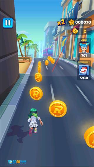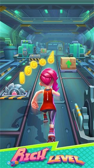 2、打造多元都市主题场景,涵盖霓虹街区、城市屋顶、地铁隧道等特色区域,每个场景都有独特的障碍布局与视觉风格,带来丰富的奔跑体验。