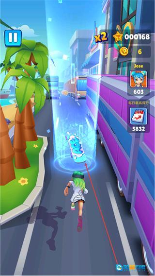 4、动感音效与视觉效果深度融合,节奏明快的背景音乐搭配角色奔跑、障碍碰撞的真实音效,营造出沉浸式的街头跑酷氛围,增强游玩代入感。