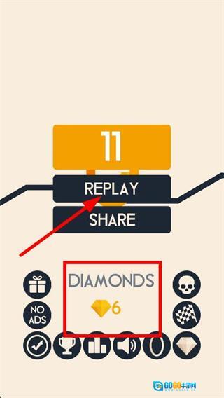 3、要是圆圈没能成功避开障碍,就点击REPLAY按钮,重新开启挑战。
