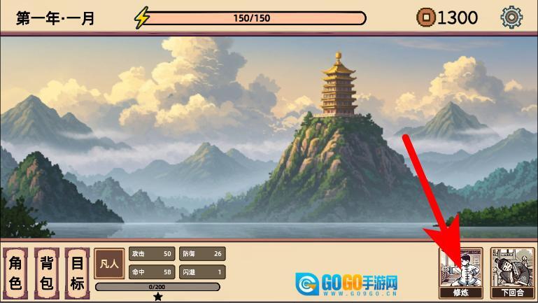 2、在游戏主界面,点击右侧修炼选项,进入修炼技能页面。