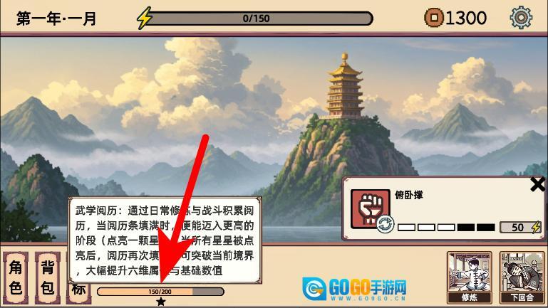 1、在小小侠客模拟器首页,点击开始按钮,进入游戏主界面。