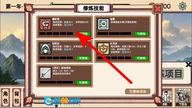 3、在修炼技能页面,选择要修炼的技能,点击对应修炼按钮。