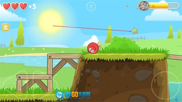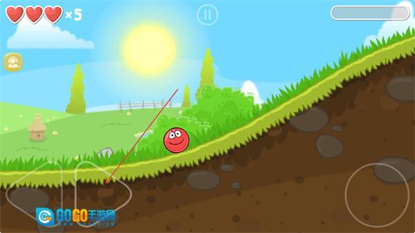 1、操控红色豆豆沿草地滚动,避开悬崖区域,向关卡前方推进。