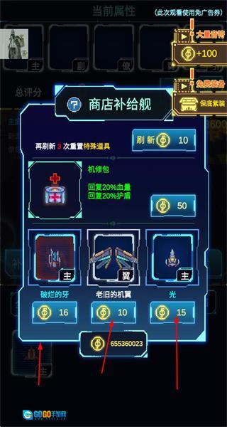4、在商店购买补给道具与装备,恢复机甲状态、强化机甲属性,为后续闯关提供物资与战力支持。