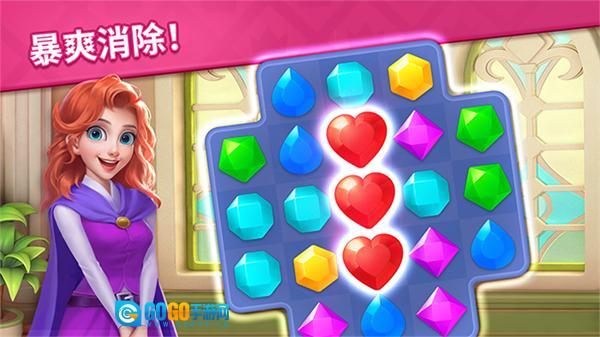 2、创新融合三消与装饰玩法,消除宝石获取的资源直接用于城堡翻新,从家具挑选到布局摆放全由自主决定,实现益智挑战与创意设计的无缝衔接。