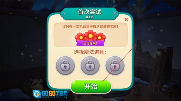 1、点击开始进入关卡,获取首次尝试的三朵花奖励。