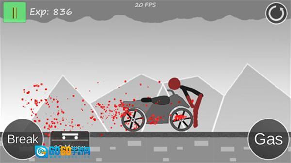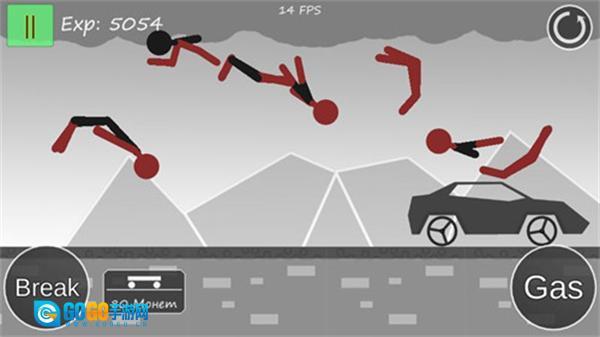 3、在赛道行进中,载具会撞击火柴人角色,持续行驶可积累Exp,需保持载具稳定移动,碰撞角色进行攻击获得分数。