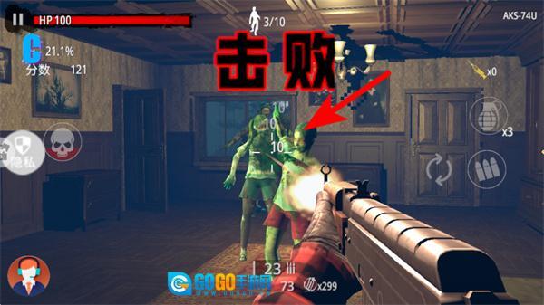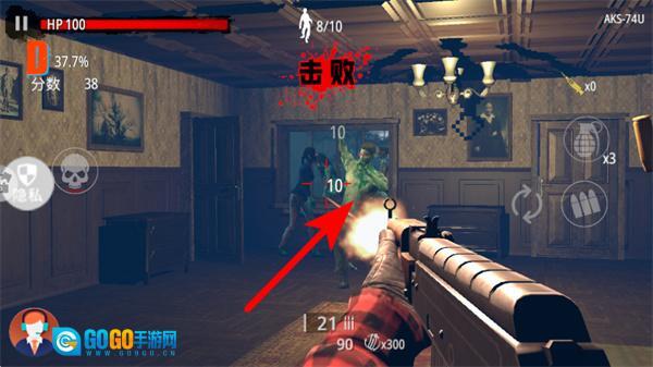 3、继续射击剩下的僵尸,慢慢清理掉当前场景里的敌方目标,以此积累关卡分数。