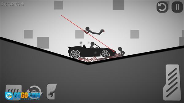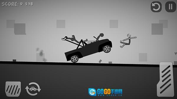 2、借助地形让汽车碰撞更多火柴人,提升得分进度。