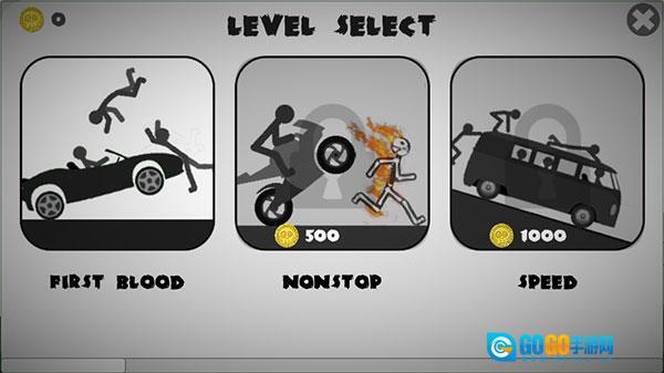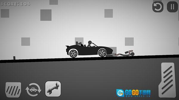 4、驾驶汽车靠近路牌等障碍物,利用场景元素撞击火柴人,推进游戏。