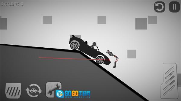1、操控汽车移动,利用斜坡撞击火柴人,积累得分。