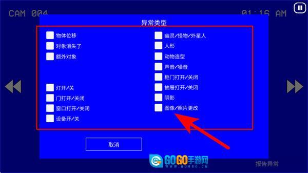利用6个摄像头切换视角,仔细观察每个场景,留意物品位置变化、光影异常、不明身影等异常点,点击标记异常,一个录像含多个场景,需持续切换镜头排查。