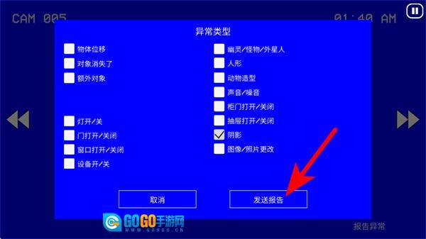 3、确认异常选项后,点击发送报告按钮,提交异常排查结果,推进关卡进度。