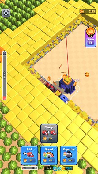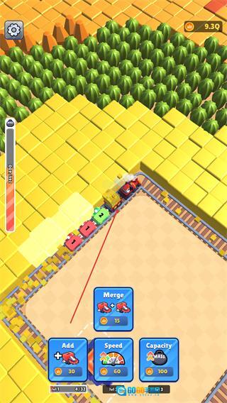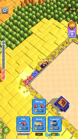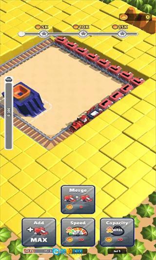 1、点击下方Add添加车厢,或升级Speed,Capacity,让火车沿轨道收集资源。