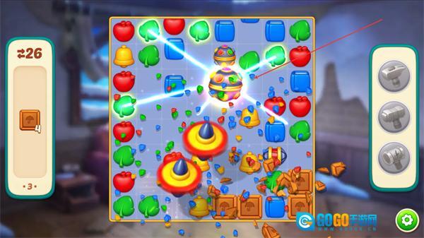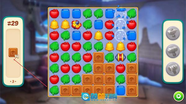 1、优先消除木板图案,以此积累左侧的进度条,同时借助爆炸类等特效道具来扩大消除范围。