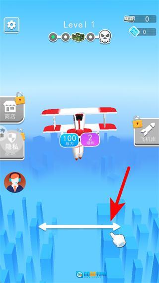 1、通过滑动屏幕操控飞机在场景内移动,灵活调整飞行路径,精准地朝着增益道具的方向行进,以此积累优势。