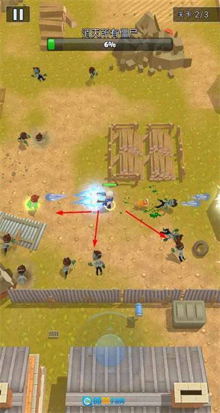 4、持续攻击剩余丧尸,完成关卡目标,推进至下一关并积累更多战斗收益。