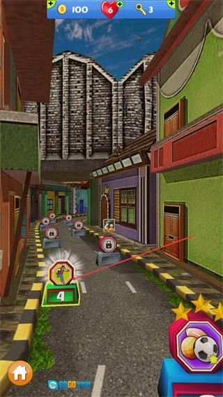 滑动并踢向目标箱子可获得金币奖励。