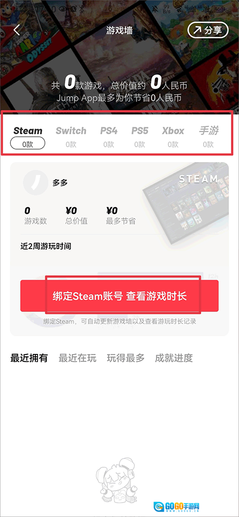4、回到游戏墙页面,就能看到你在Steam里拥有的游戏了。