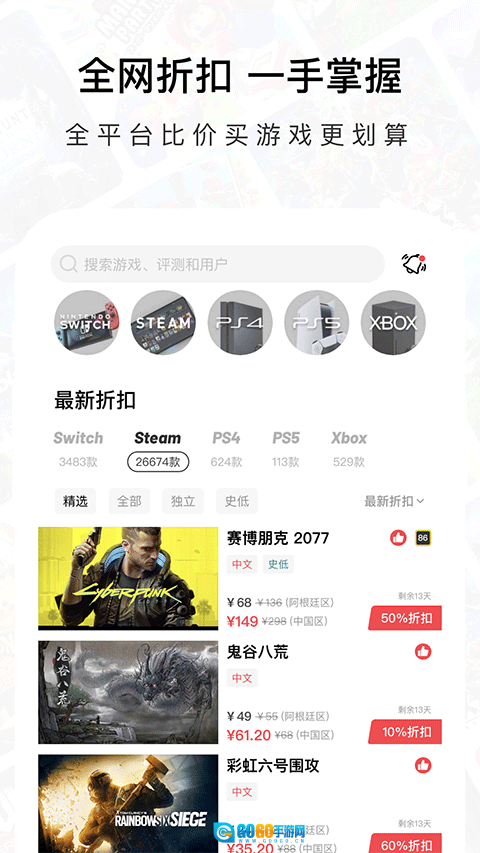 1、能够查询各类PC主机游戏的价格,方便玩家以更低的价格入手游戏