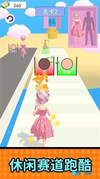 彩虹小赛道是一款融合创意换装与休闲跑酷的游戏,在绚烂梦幻的3D赛道中奔跑闯关,沿途拾取服装饰品自由搭配,满足关卡时尚要求提升评价,凭借操作技巧跨越复杂障碍,合理运用道具应对挑战,解锁隐藏关卡与个性造型,体验视觉与操作的双重乐趣。