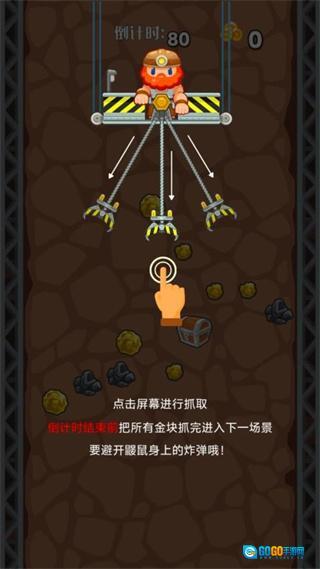 3、控制挖矿爪避开炸弹类危险物品,只抓取金块,避免触发爆炸导致闯关失败。