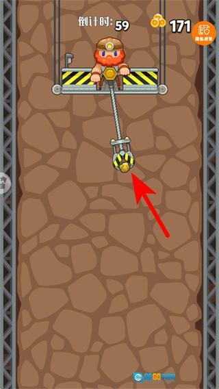 2、点击屏幕操控挖矿爪下落,抓取地下的金块资源,积累关卡积分与奖励。