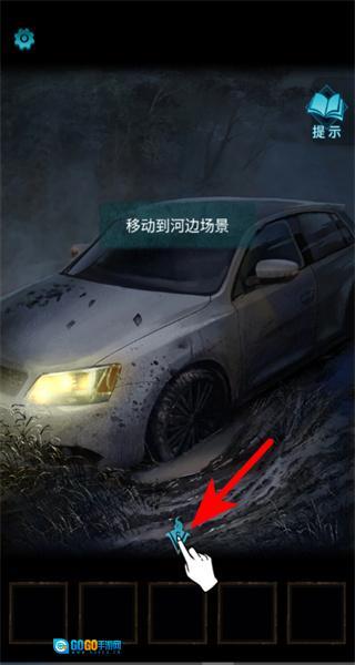4、点击场景中的移动按钮,切换到河边场景,解锁新的解谜区域继续探索剧情。