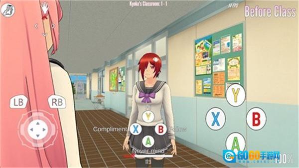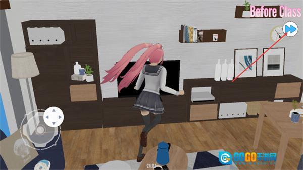 3、在BeforeClass场景中,通过左侧的方向操控按钮控制角色移动,点击右上角的推进按钮可推进剧情,该场景是上课前的室内互动环节。