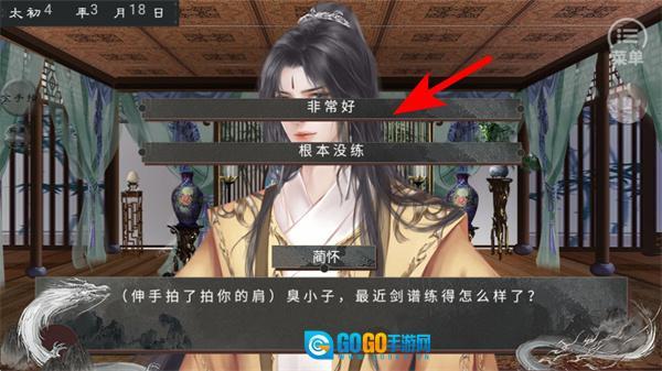 3、在对话选项界面选择对应的回复如非常好,完成与角色的互动,推进剧情的分支走向。