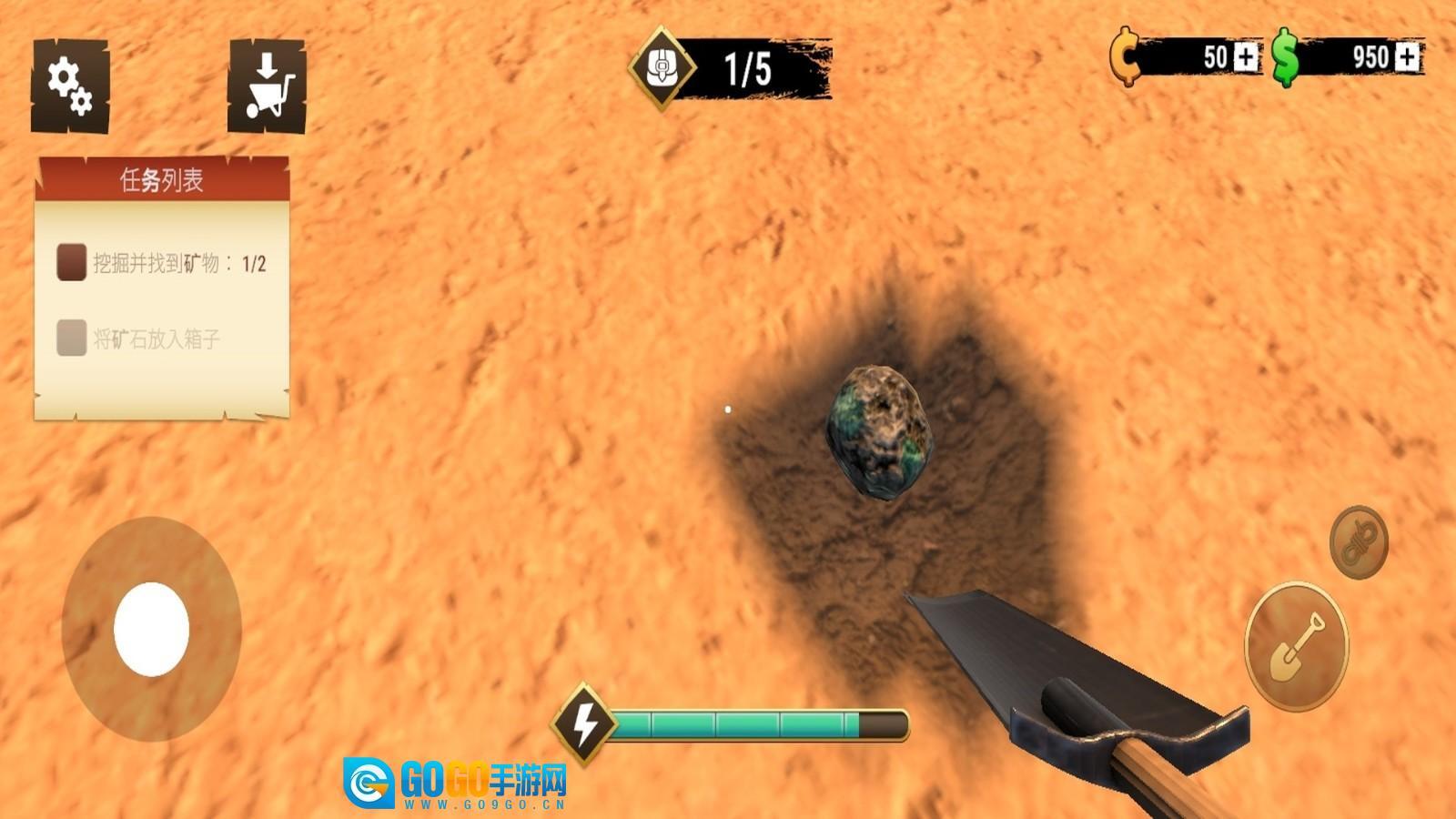 1、操控角色使用工具挖掘地下金块,在挖掘过程中需留意金块分布,合理规划挖掘路线,高效收集黄金资源。