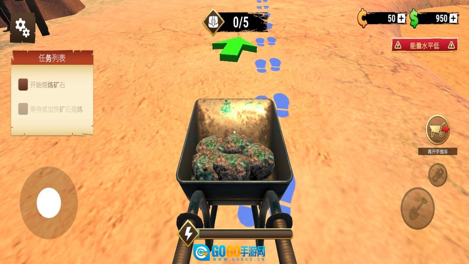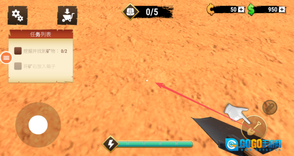 1、初期优先熟悉挖掘操作,使用基础铲子在地表附近尝试挖掘,留意小范围金块分布,积累初始黄金用于工具初步升级。