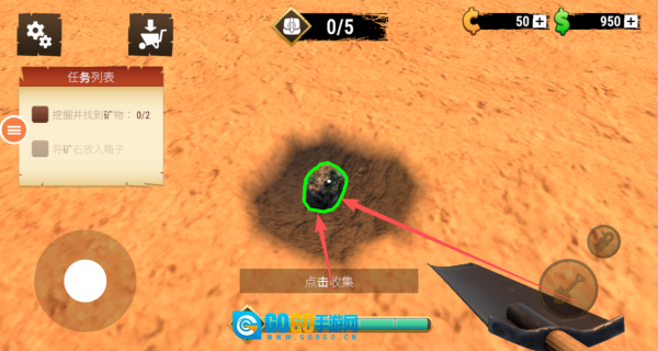 3、当挖出了矿石之后,点击进行收集。