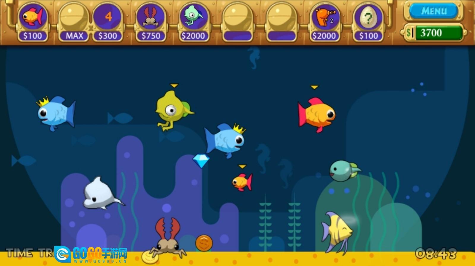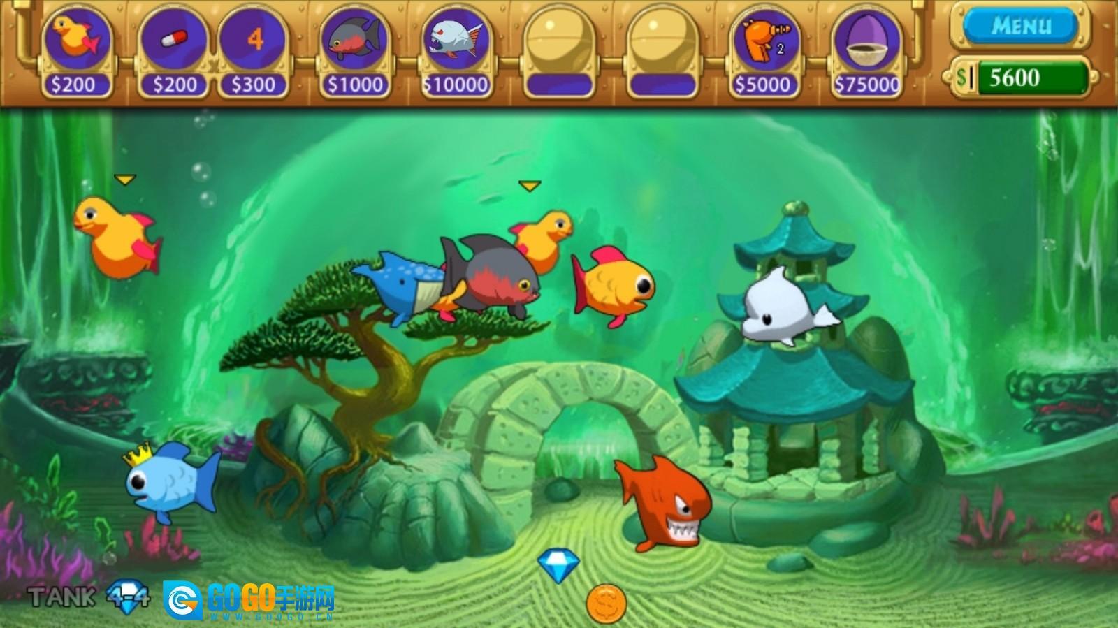 游戏中除了一般的鱼儿之外,还会出现其他的鱼类或宠物,例如玩家如果有足够的钱购买食肉鱼,则每隔一段时间食肉鱼会生产钻石出来;而宠物则会出现在玩家完成关卡后出现,也就是玩家使尽全力呵护的蛋会有宠物破壳而出。