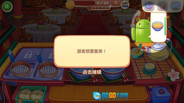 2、接下来是教学关卡,我们遇到了第一位顾客,他头顶气泡里显示的就是他要点的餐品。